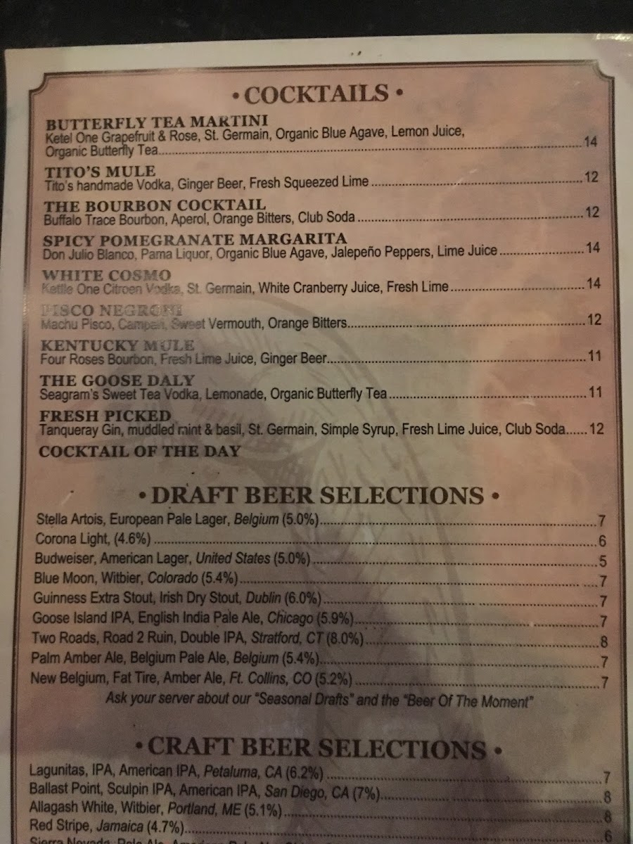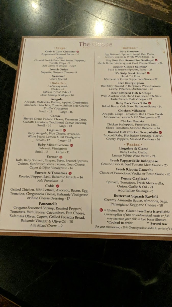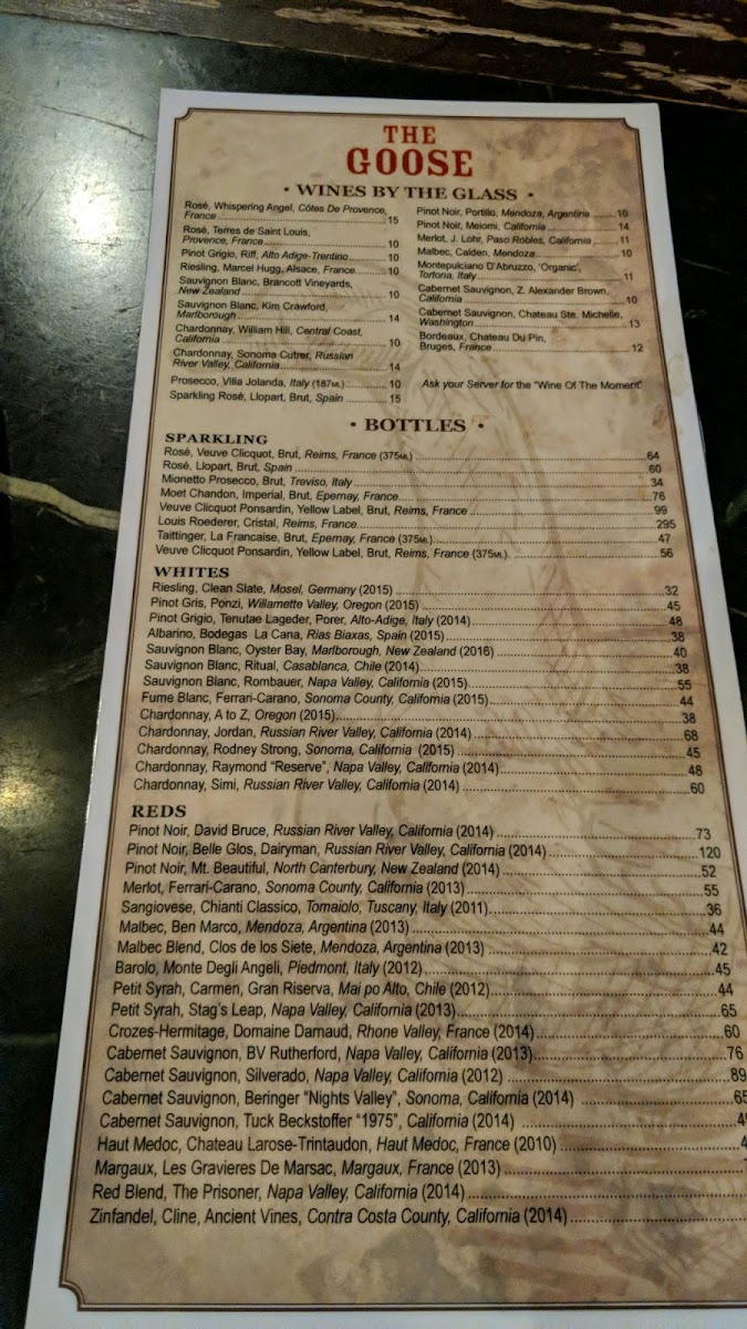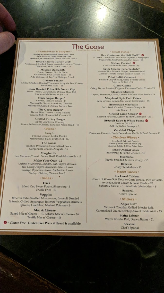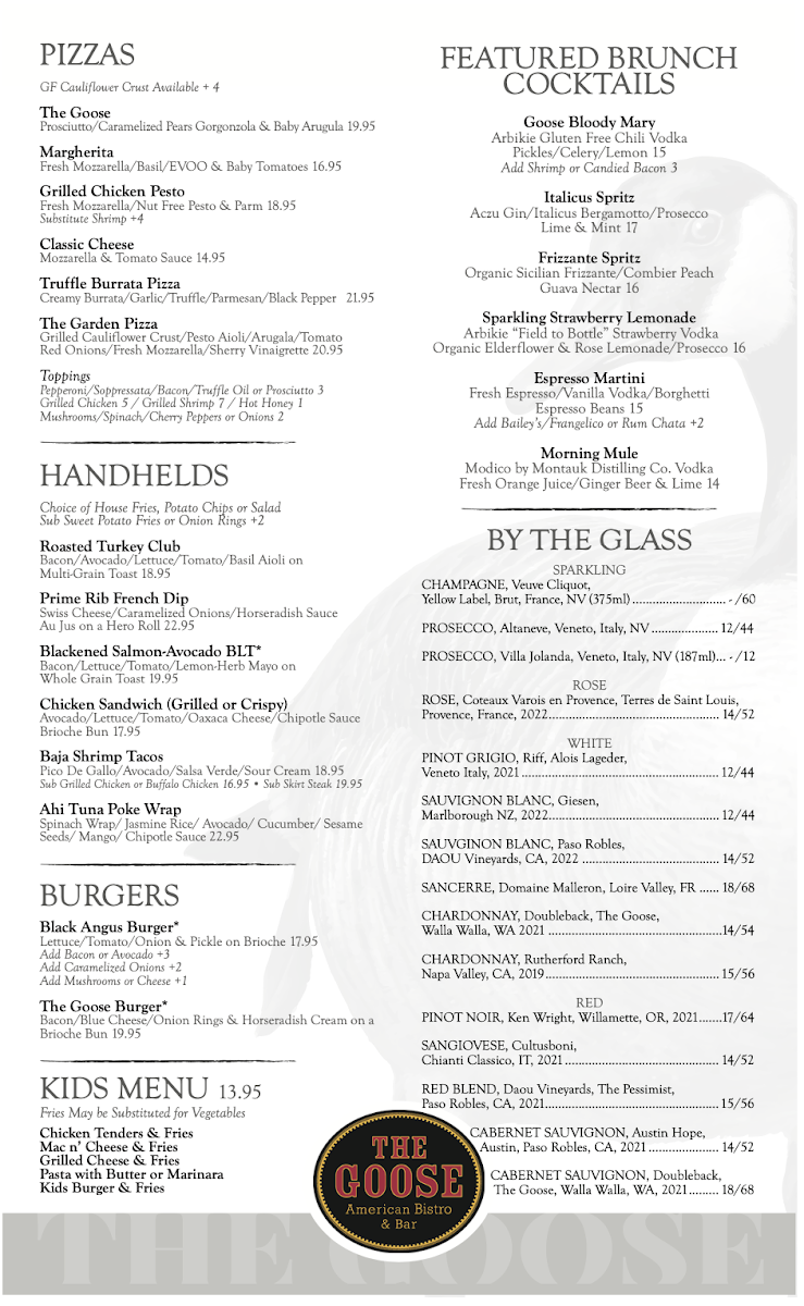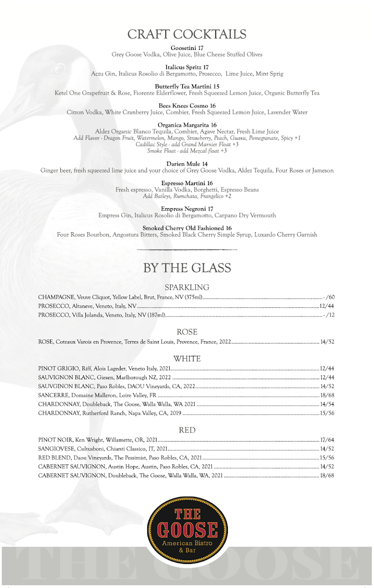 The Goose American Bistro & Bar Menu